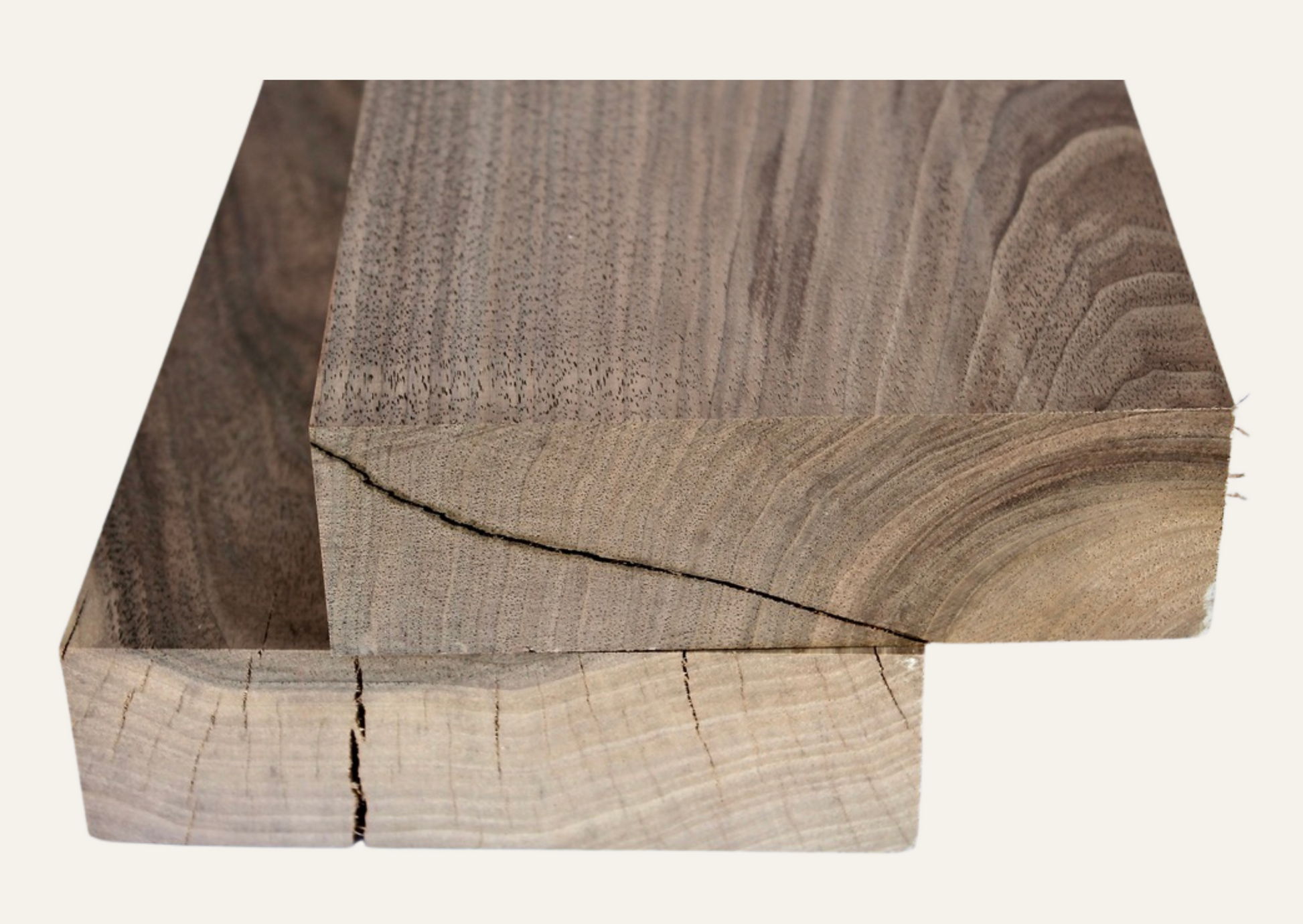 Nussbaum in B-Qualität verbindet Eleganz mit Ursprünglichkeit – perfekt für Projekte mit rustikaler Note.