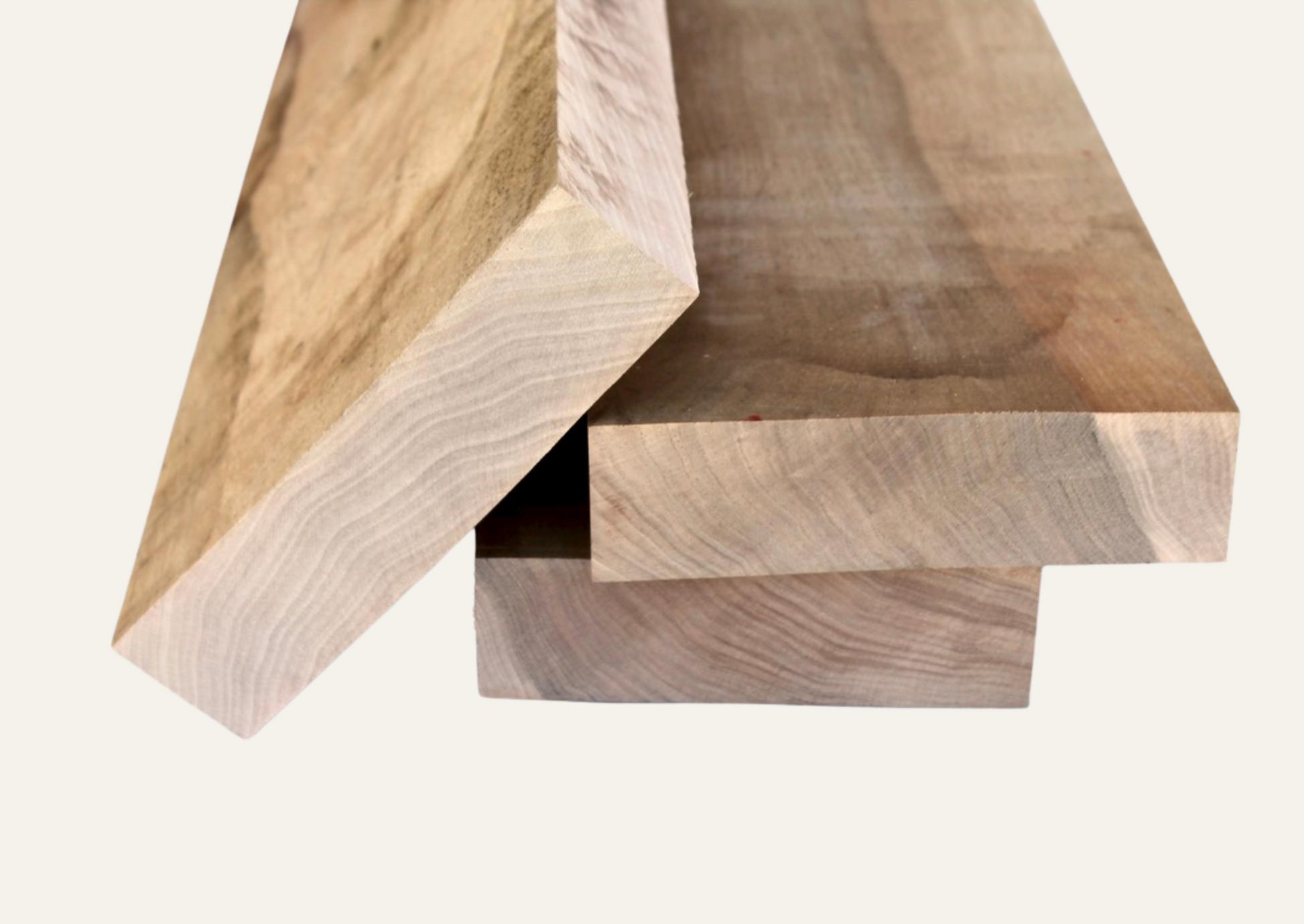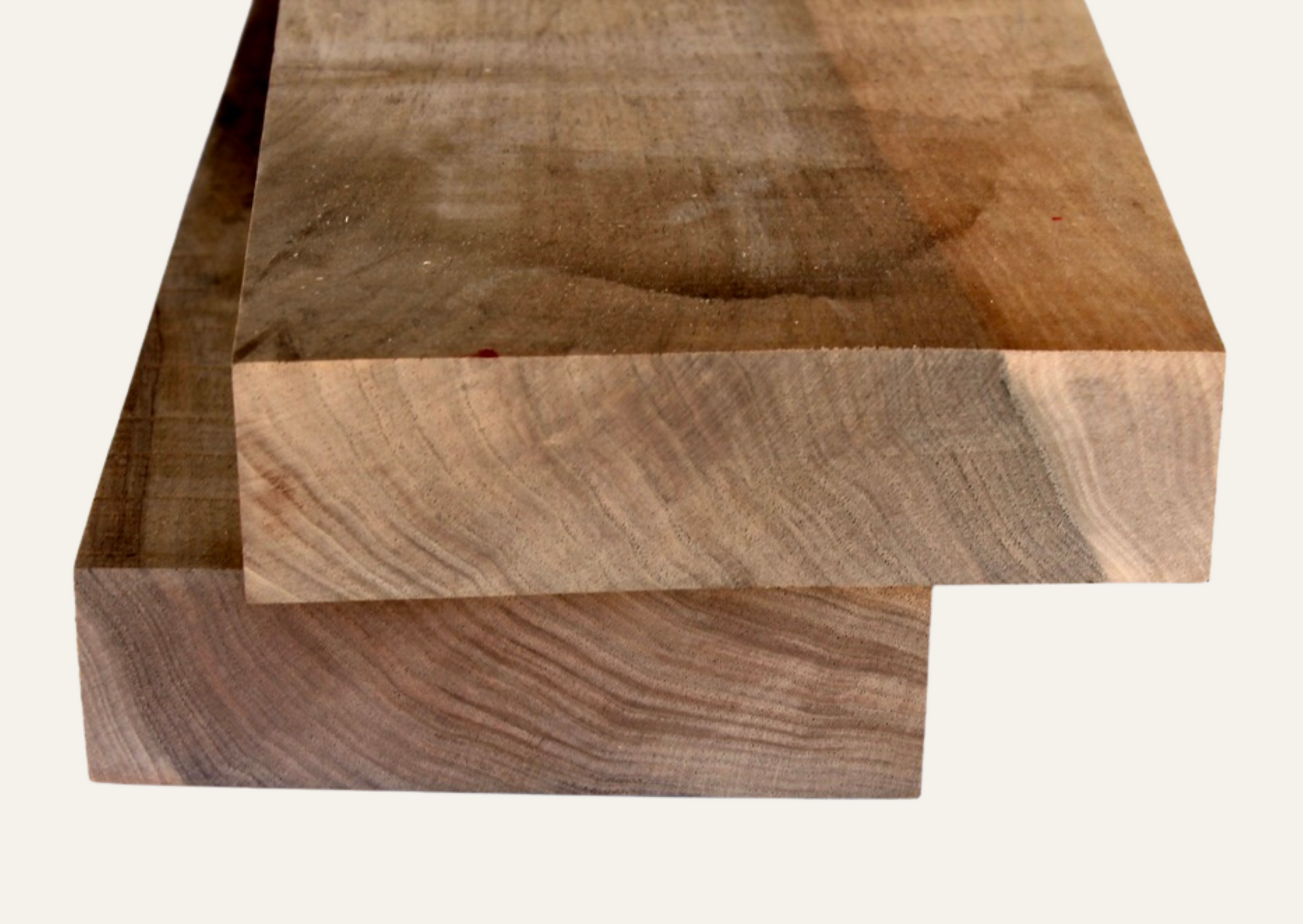Nussbaum in B-Qualität verbindet Eleganz mit Ursprünglichkeit – perfekt für Projekte mit rustikaler Note.