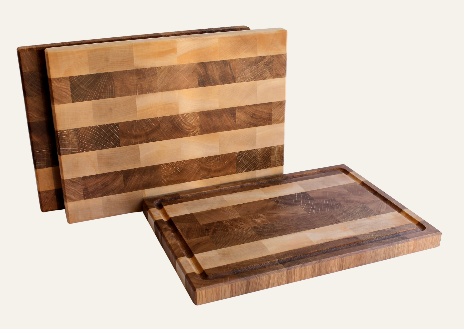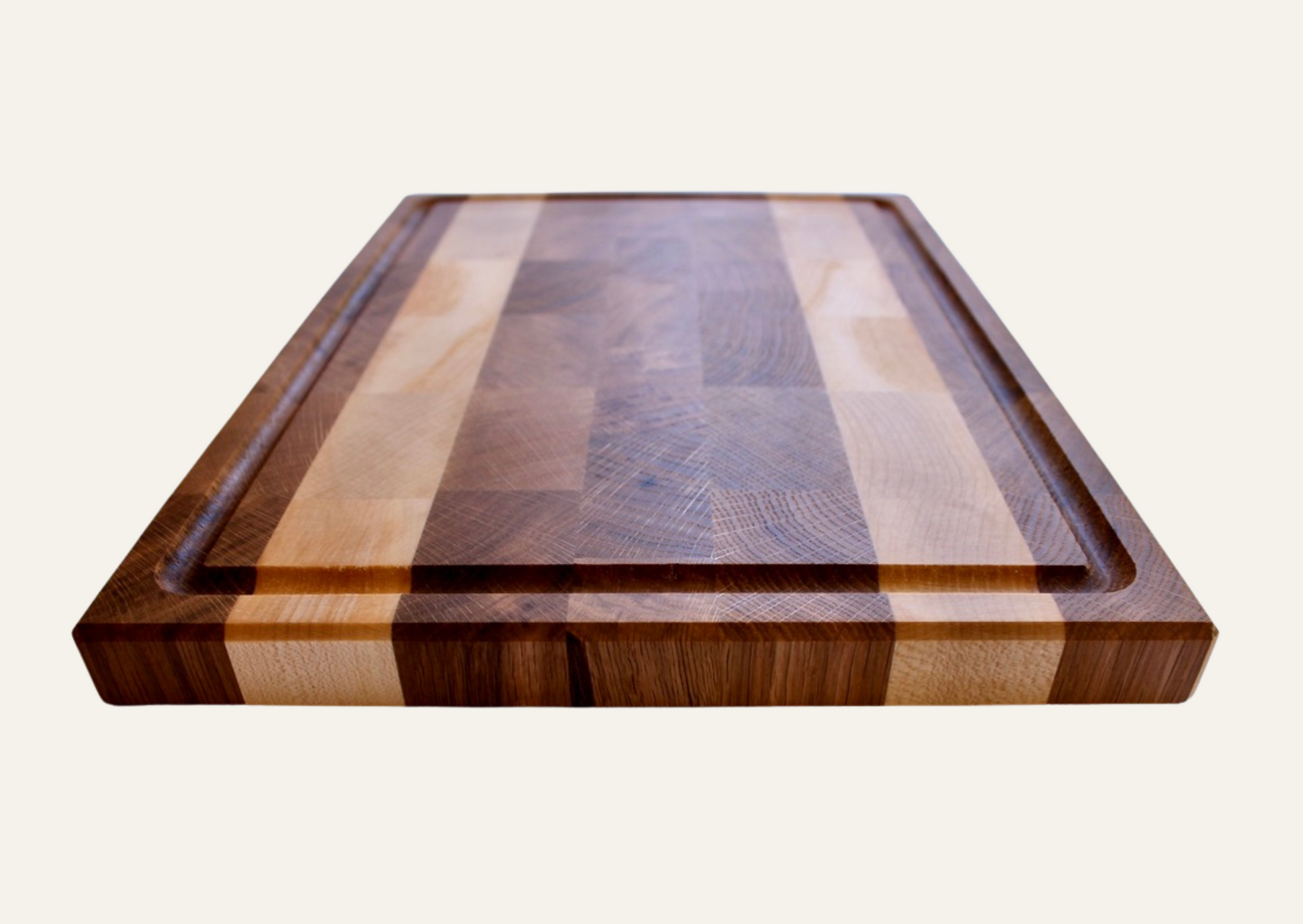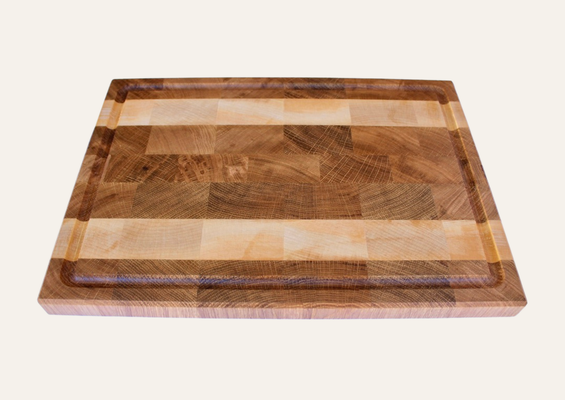 Stirnholzschneidebrett aus Schweizer Eiche und Ahorn 3cm dick