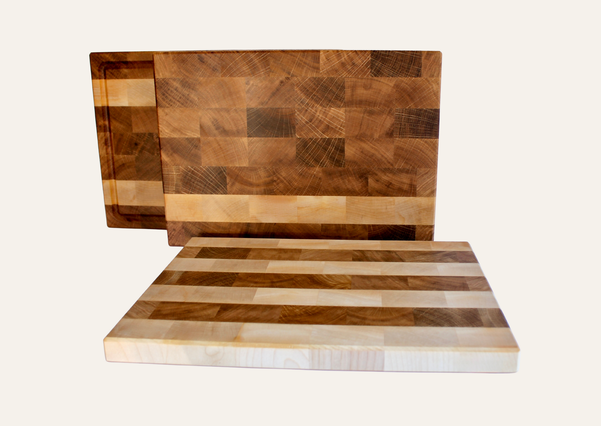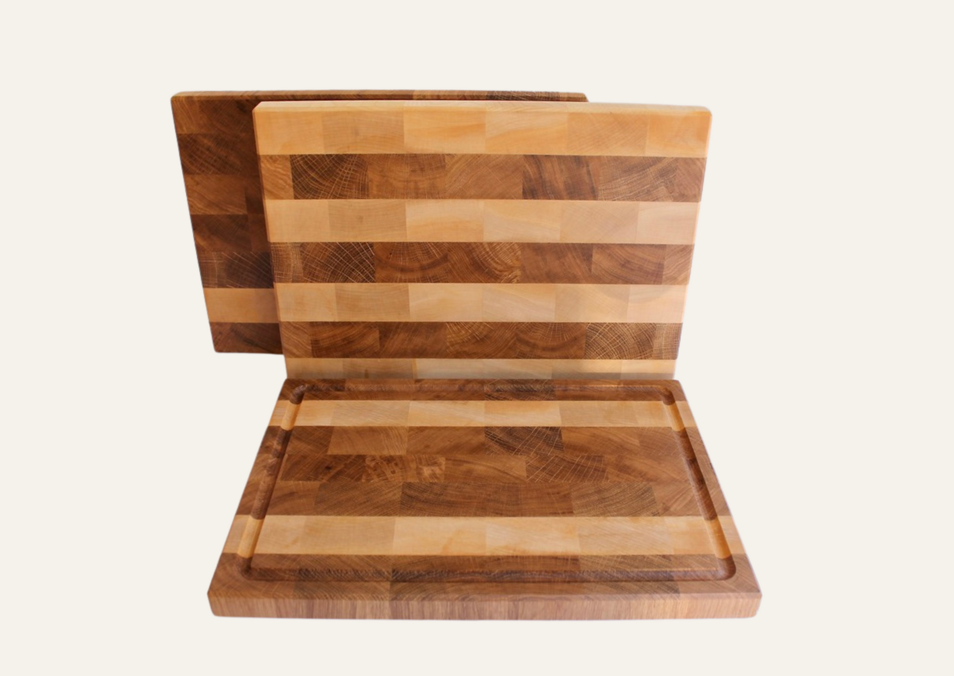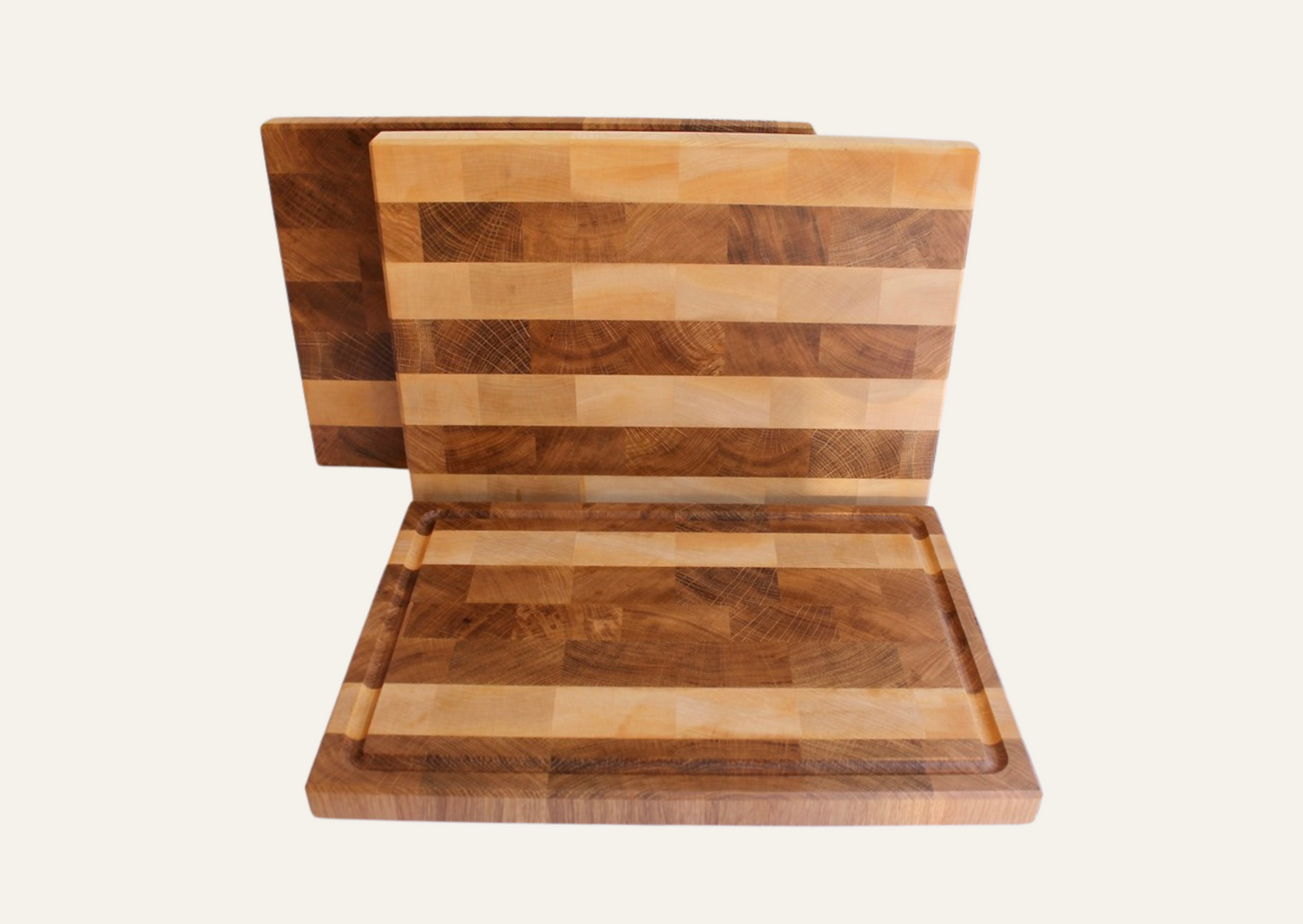 Stirnholzschneidebrett aus Schweizer Eiche und Ahorn 3cm dick