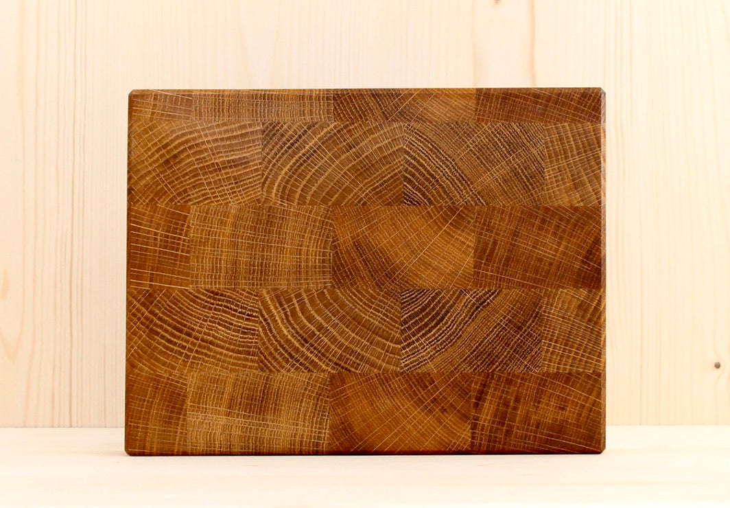 Für alle, die markantes Holz mit Charakter lieben. Stirnholz aus Eiche ist besonders widerstandsfähig, langlebig und schont deine Messer. Die kräftige Maserung bringt ein Stück Natur auf deinen Tisch.